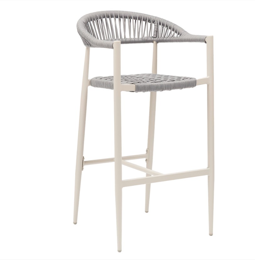 Crie um ambiente de bar ou área gourmet sofisticado com a Banqueta Trancoso. O seu design escultural em corda náutica e a construção premium definem o requinte descontraído para o seu espaço exterior.