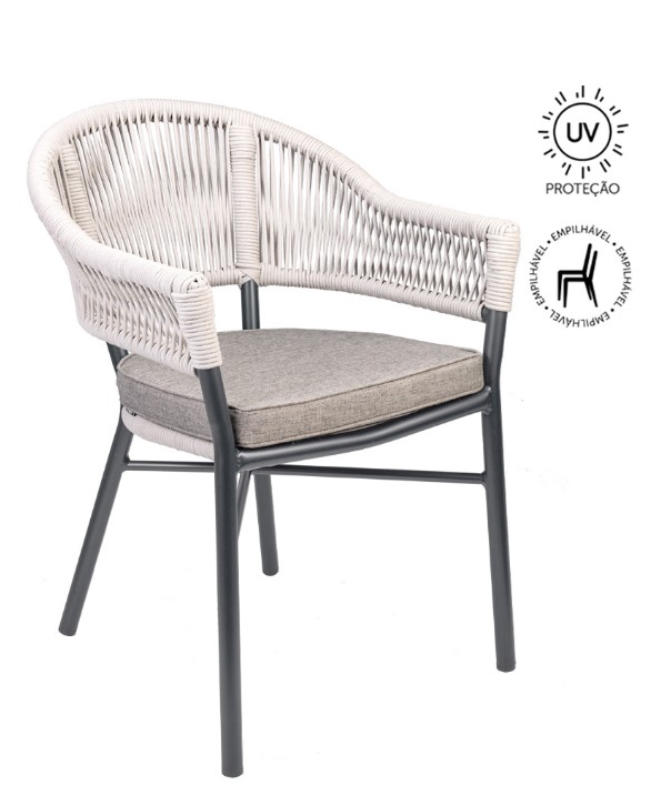 Design Premium e Ventilação: O encosto envolvente e o assento são trabalhados em trama de corda náutica, o que garante um visual moderno, conforto ergonômico e excelente circulação de ar.