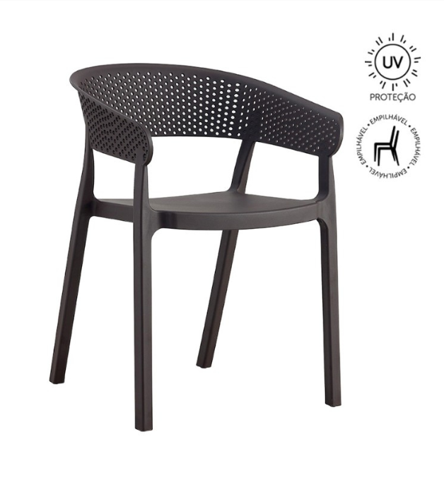 A versão com braços eleva o padrão de conforto e elegância. Com um design envolvente e estrutura em polipropileno de alta performance, esta peça foi projetada para oferecer maior suporte e relaxamento durante o uso. Sua base desmontável une a sofisticação de uma poltrona moderna com a praticidade necessária para o dia a dia, facilitando a logística e a organização do espaço.