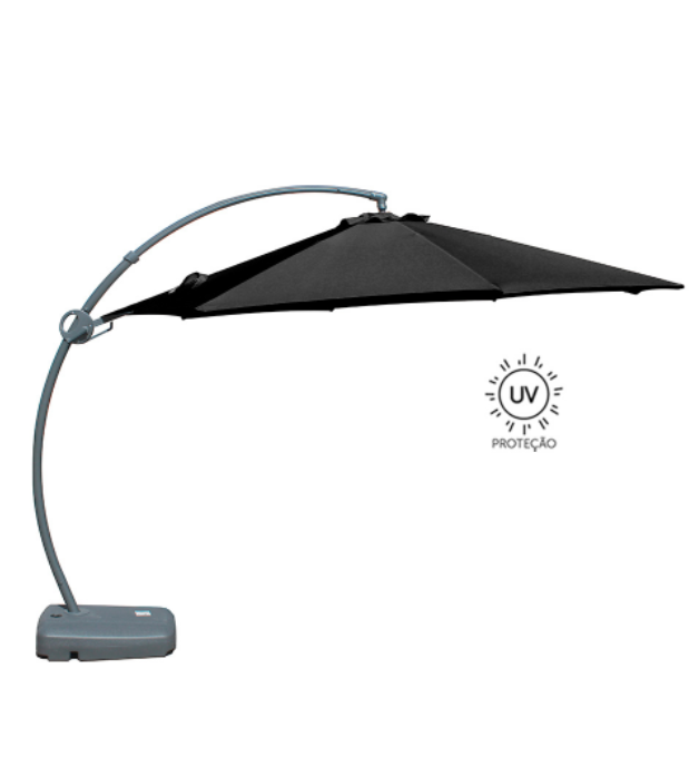 - Base de Alta Densidade: Inclui base em polietileno de alta resistência, projetada para ser preenchida com água (50 kg) ou areia (75 kg), assegurando a máxima estabilidade do conjunto.