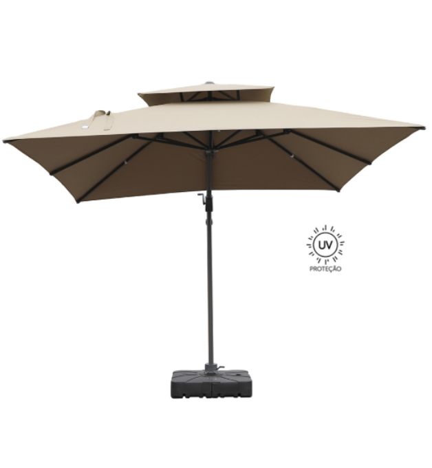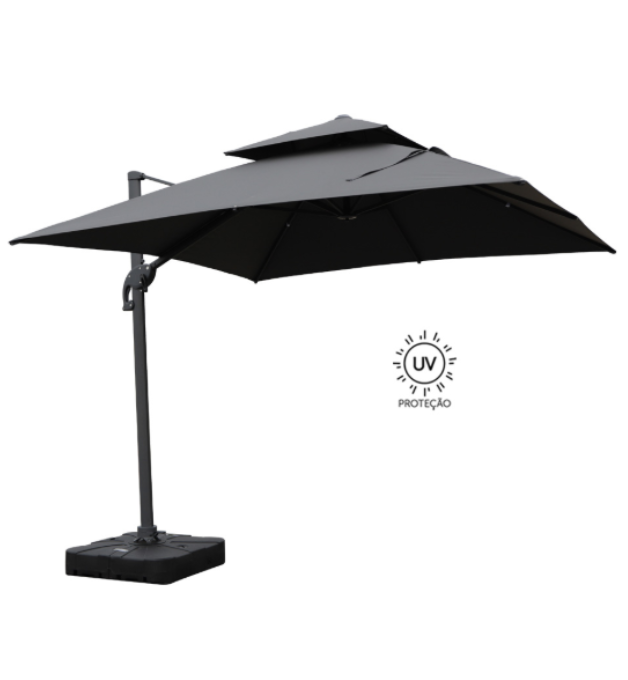 - Engenharia de Precisão: Funcionalidade total com sistema de rotação 360º acionado por pedal, abertura prática via manivela e sistema de inclinação com 6 posições para o controle total da sombra.