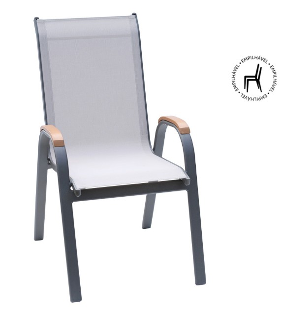 Detalhes em Polywood nos Braços: O toque final de elegância fica por conta do Polywood, um material tecnológico que reproduz a beleza da madeira natural sem a necessidade de manutenção, sendo resistente a rachaduras e desbotamento.